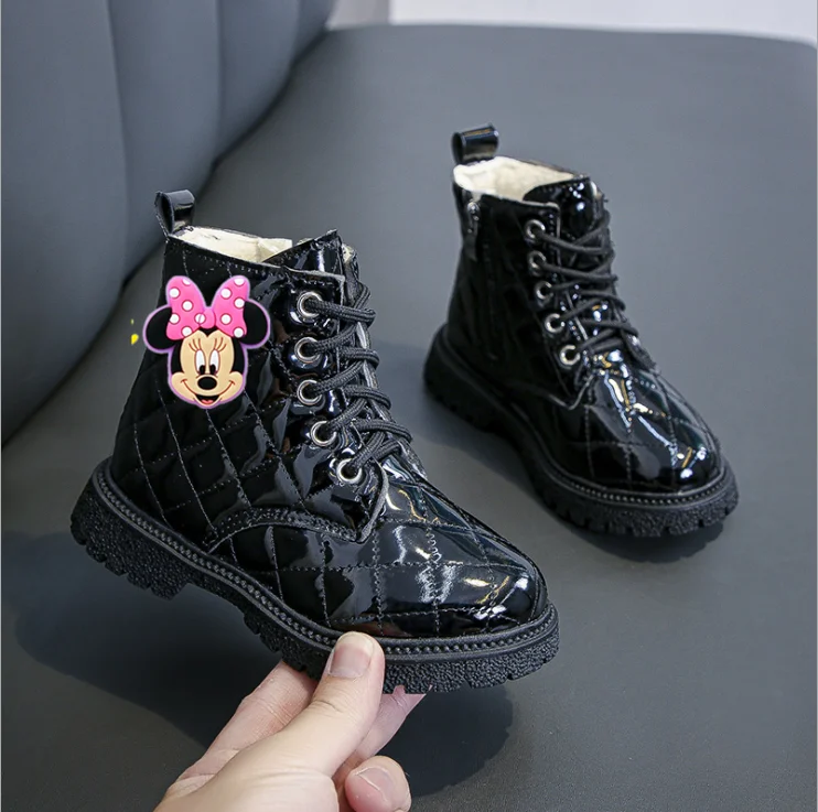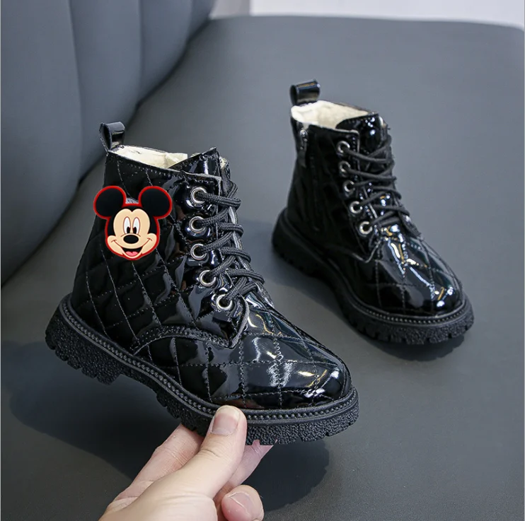 Ботинки для мальчиков и девочек, теплые хлопковые сапоги, Мультяшные персонажи Диснея, Микки Мауса, с бархатной подкладкой, короткие сапоги, зимняя обувь
