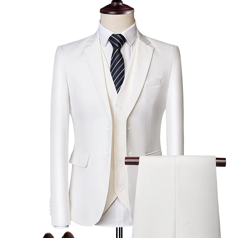 Мужской свадебный костюм, Узкий однотонный пиджак, брюки, жилет, 3 шт.
