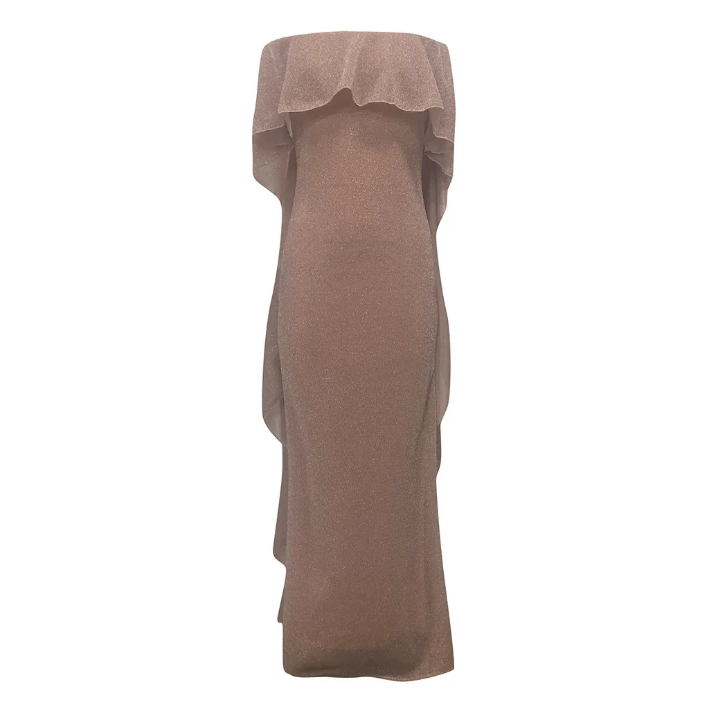 Элегантное женское модное платье макси с накидкой с коротким рукаво...