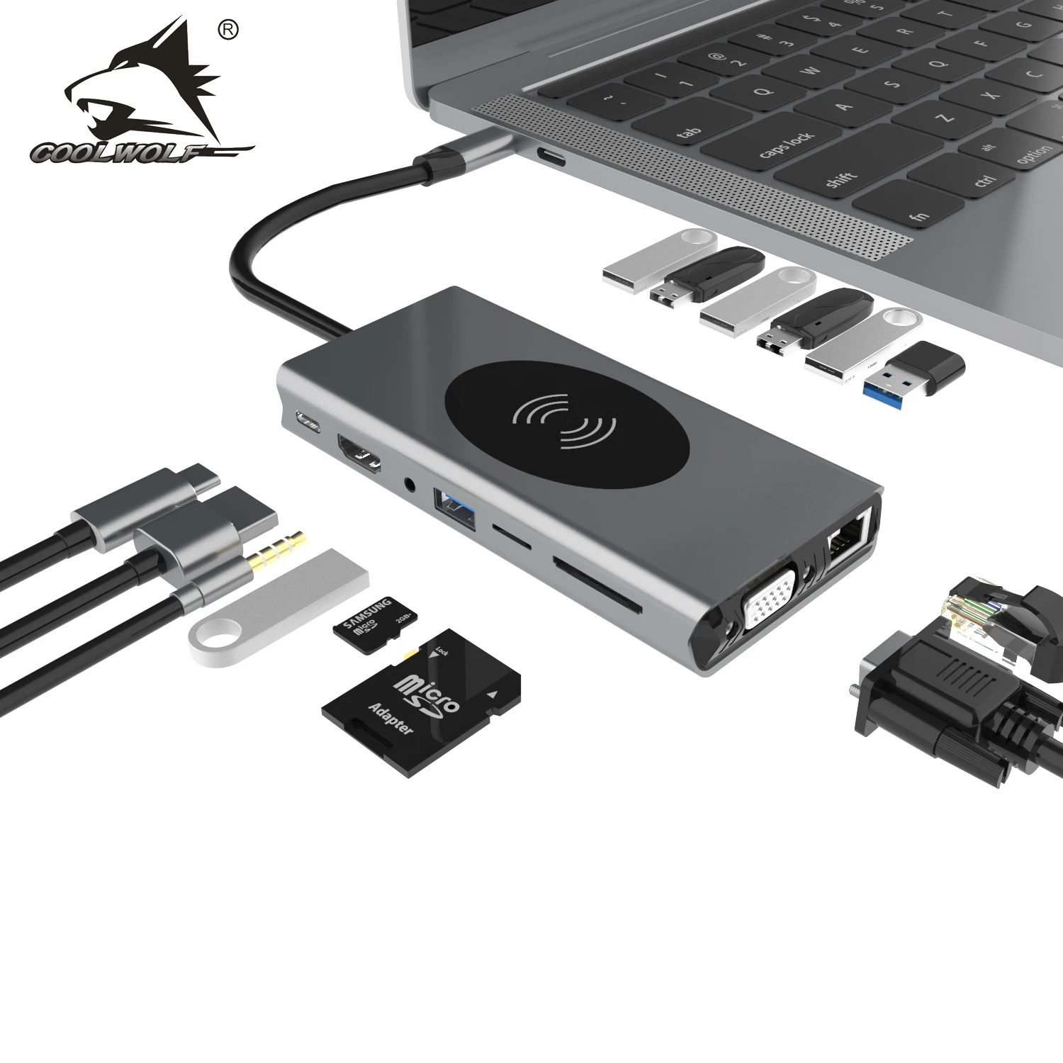 USB-концентратор COOLWOLF 15 в 1, USB C, HDMI,VGA,RJ45, 100WPD,SDTF