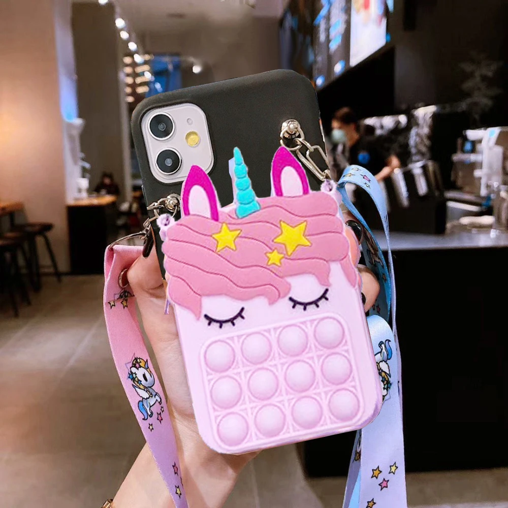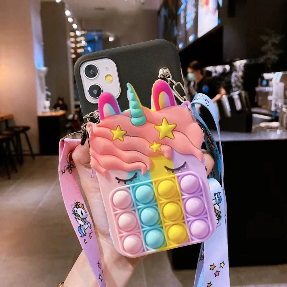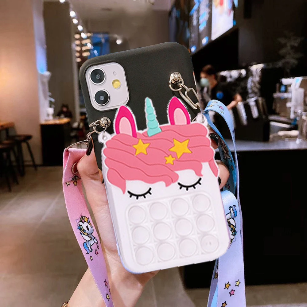 Милый кошелек Unicore с лошадью, чехол для Huawei P Smart P50 P40 P30 P20 P10 P9 P8 Lite 2017, антистресс, пузырьковый чехол с веревкой