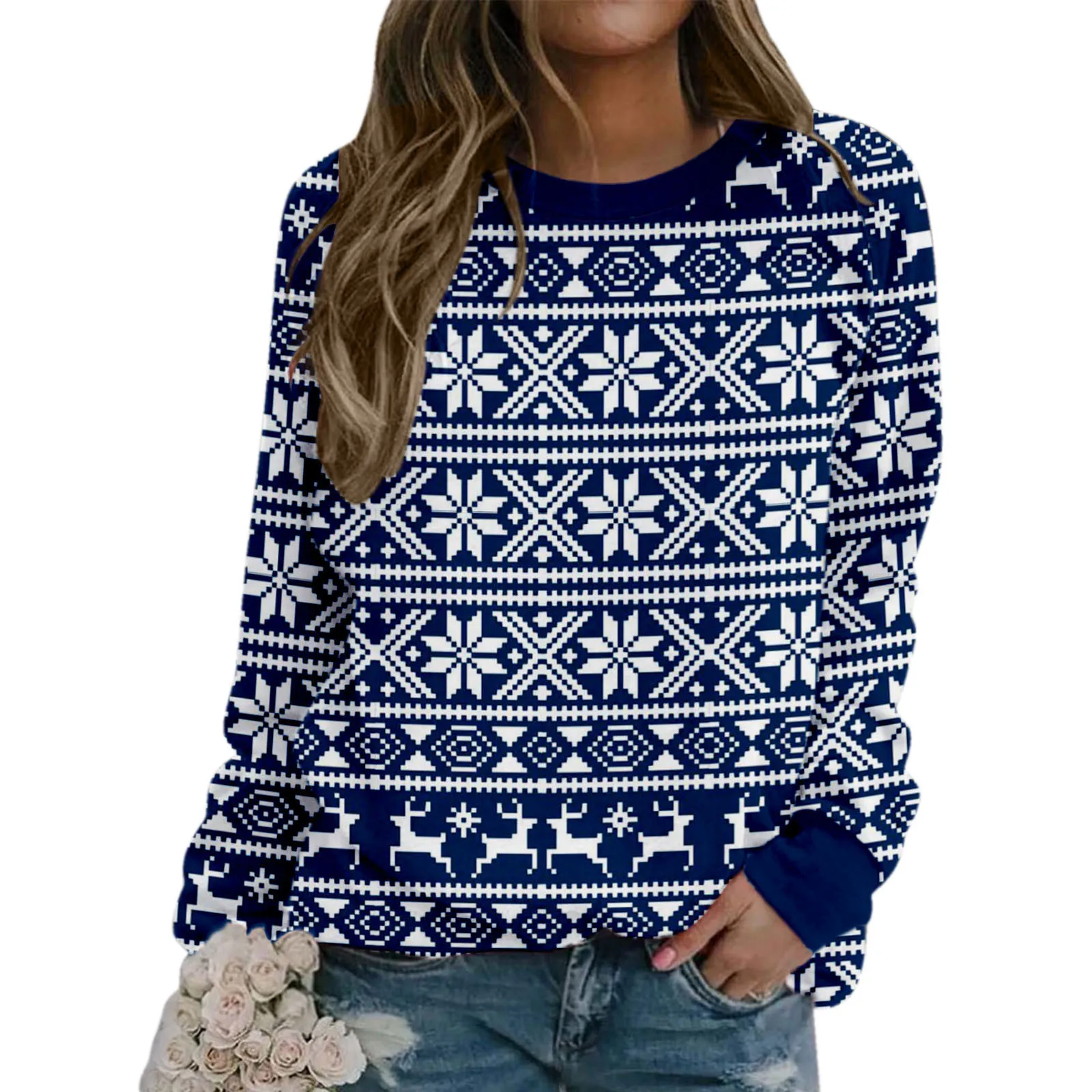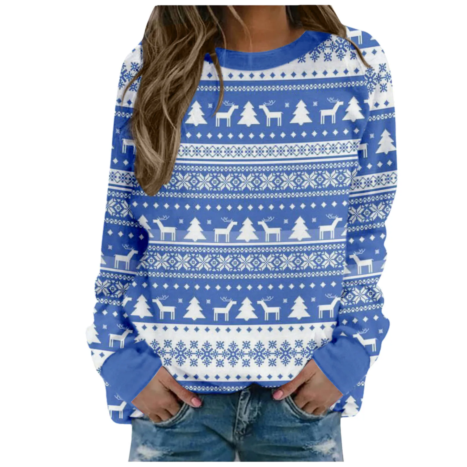 Женский свитшот с длинным рукавом и рождественским принтом, Повседн...