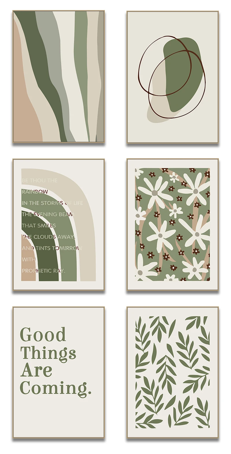 Зеленые натуральные листья, цветы, радуга, Абстрактная Картина на холсте, постер, настенные картины, современный скандинавский стиль, модный домашний декор