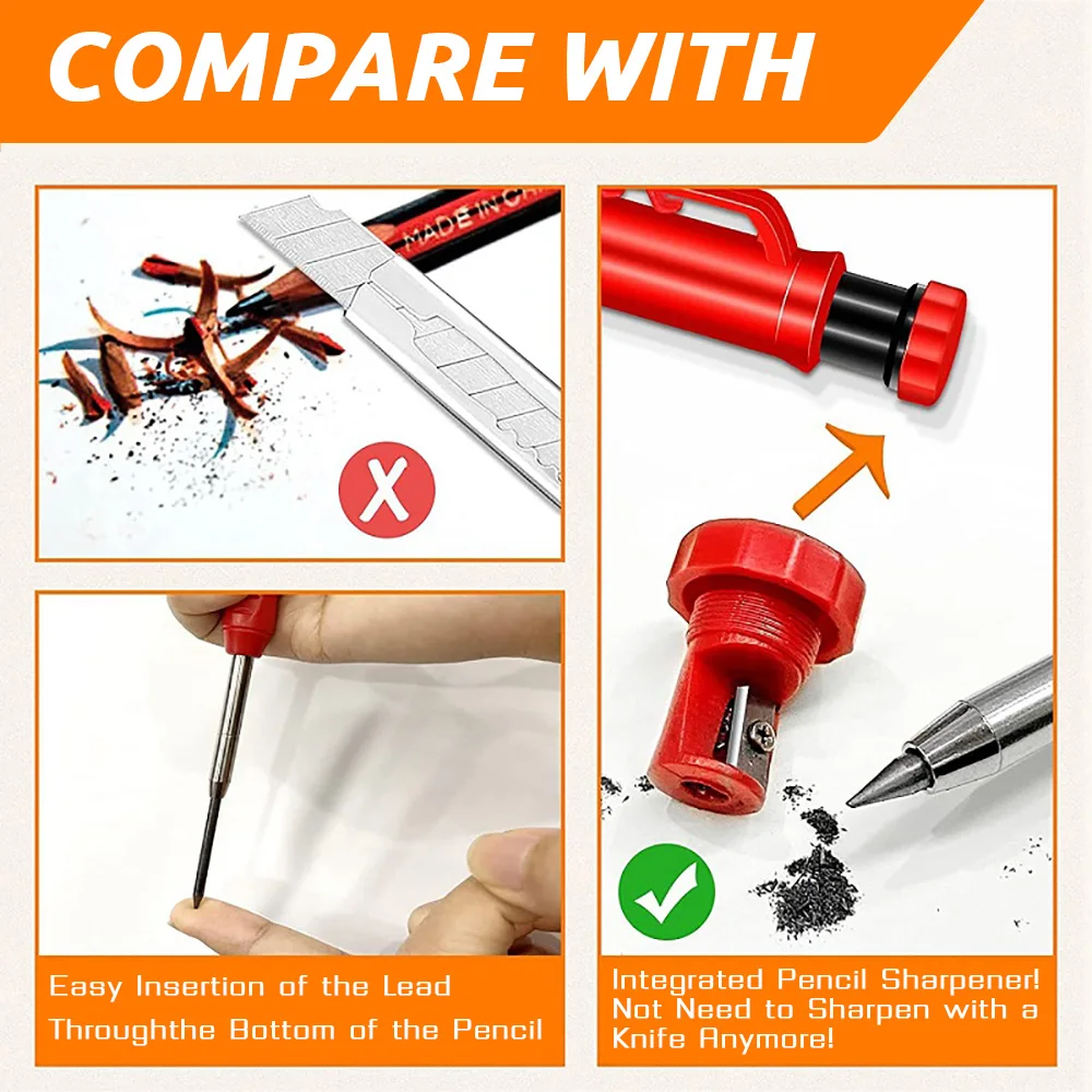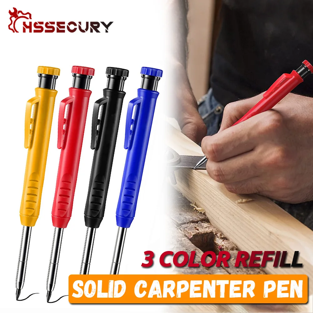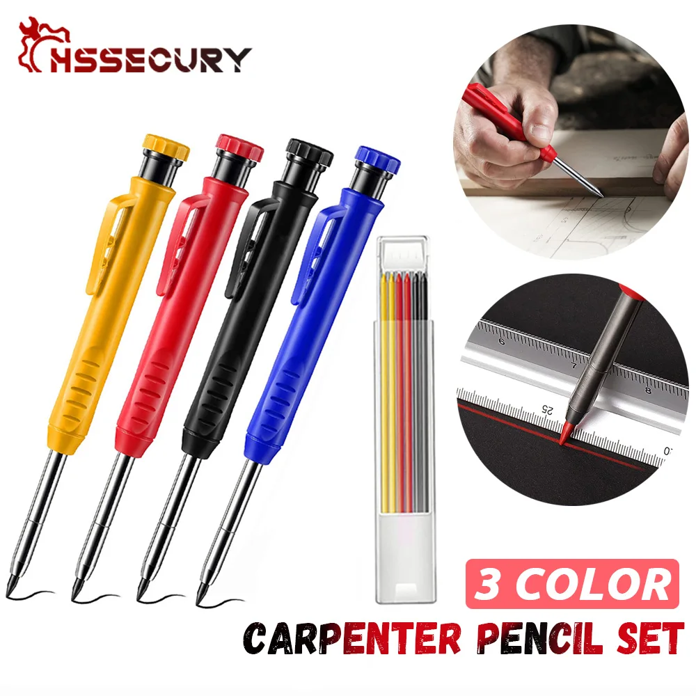 Твердый плотничный карандаш, набор со встроенной точилкой, 7 заправляющих выводов для деревообработки, строительный маркер, механический карандаш с глубоким отверстием