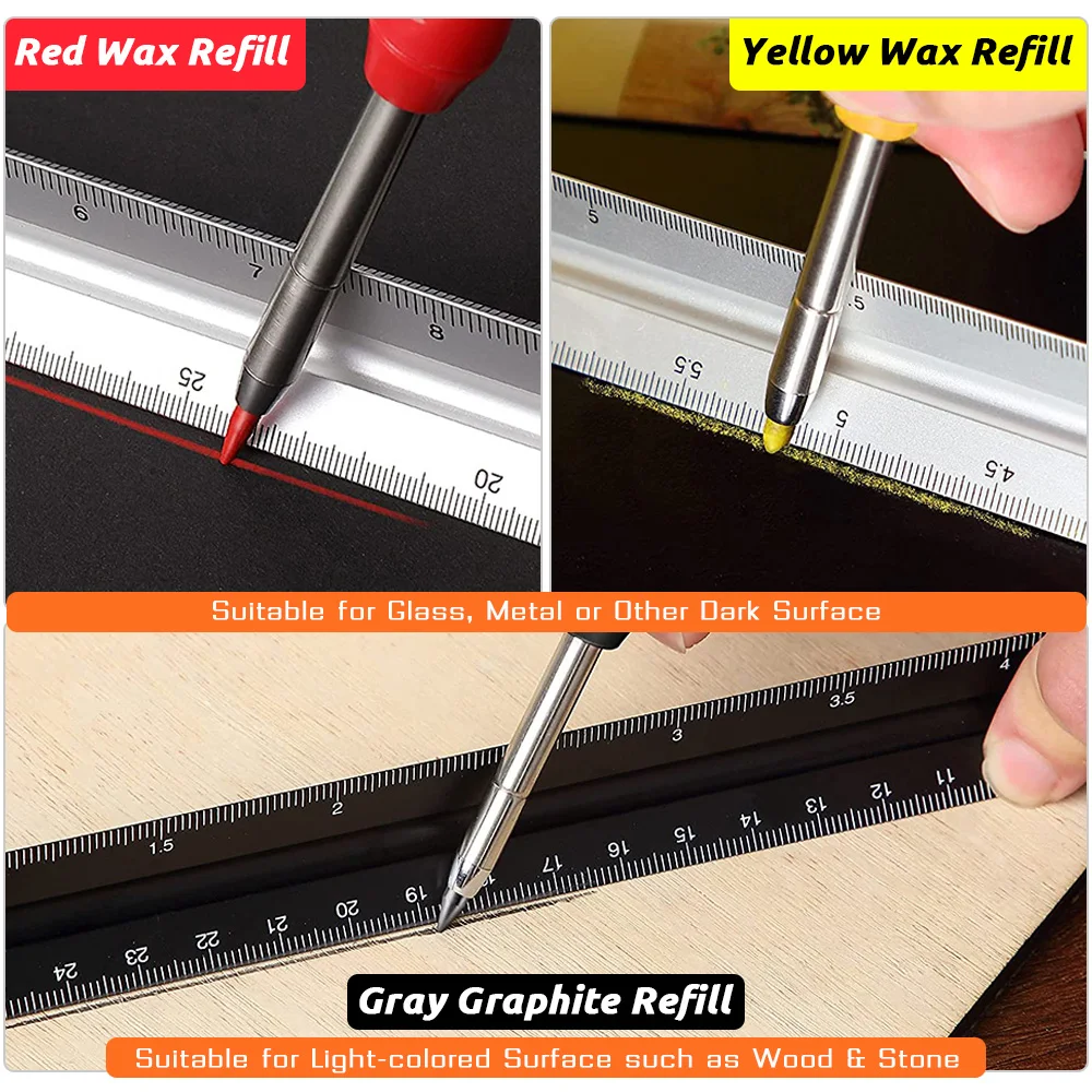 5.【Заполните для непрерывного использования 】: Маркеры для деревообработки предварительно заполнены серым свинцом и поставляются с пополняющей коробкой, включая 3 серых свинца и 3 желтых свинца, которые могут удовлетворить ваши потребности в маркировке деревообработки для долгосрочного использования. Упаковочный лист: