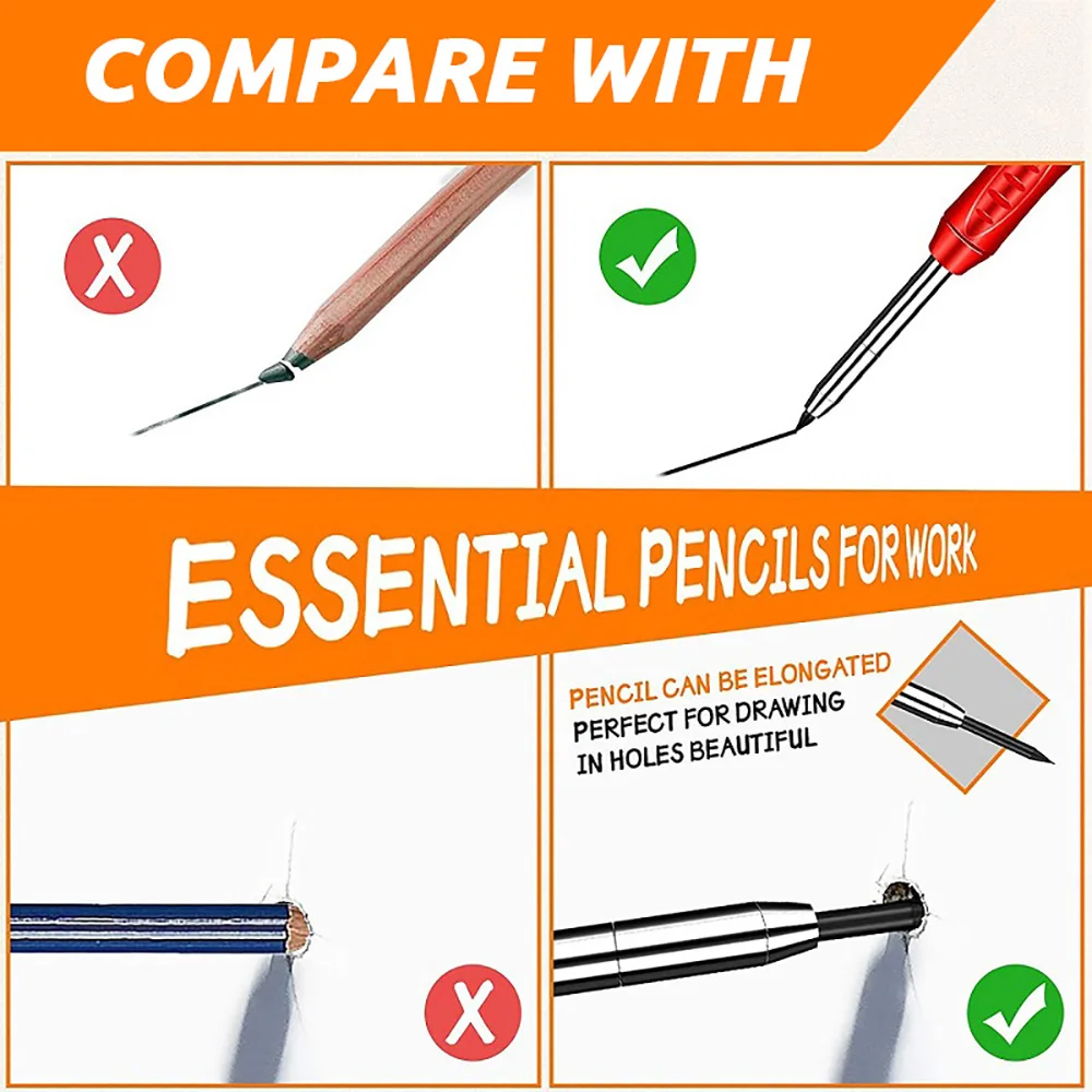3. 【Механический карандаш: Карандаш Плотника не соскальзывает пальцы с карандаша и повторные следы уменьшат боль; Дизайн ручки можно легко повесить на сумку, легко использовать и не легко потерять, повышение эффективности, подходит для строительства и каменщиков.