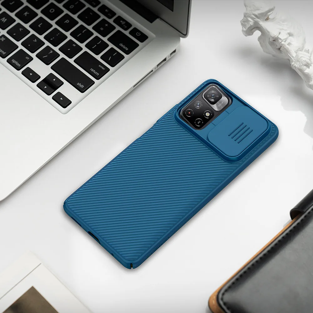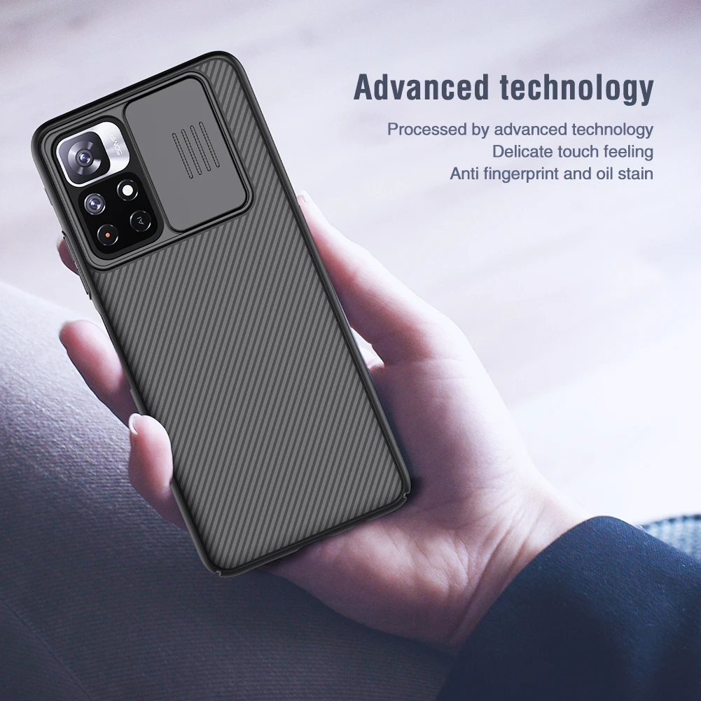 Чехол для Xiaomi POCO M4 Pro 5G Case Nillkin Slide Camera, защита объектива, Матовый экран, жесткий чехол из поликарбоната на POCO M4 Pro 4G