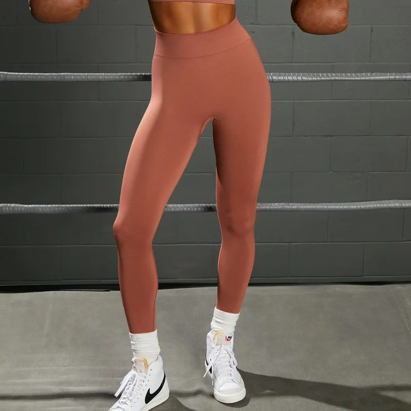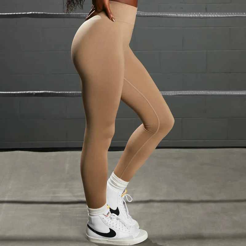 Бесшовные Леггинсы для йоги эластичные женские с пуш-ап высокой тал...