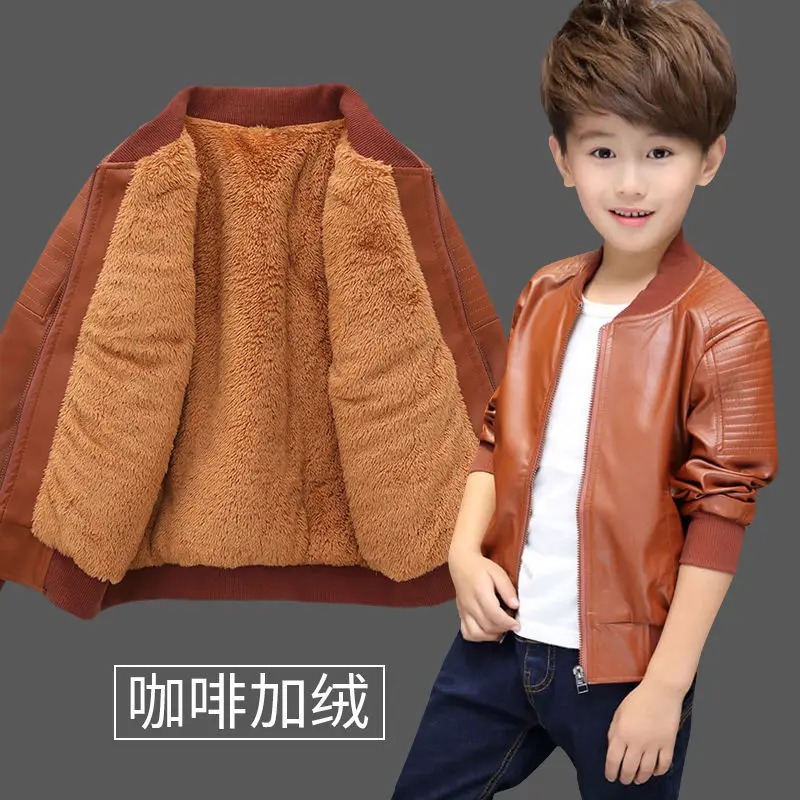 Куртка из ПУ кожи для мальчиков, Повседневная утепленная куртка на весну и осень, модная красивая кожаная куртка для большого мальчика, флисовая куртка