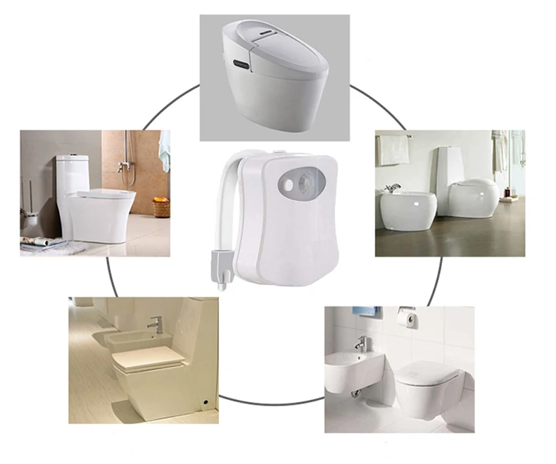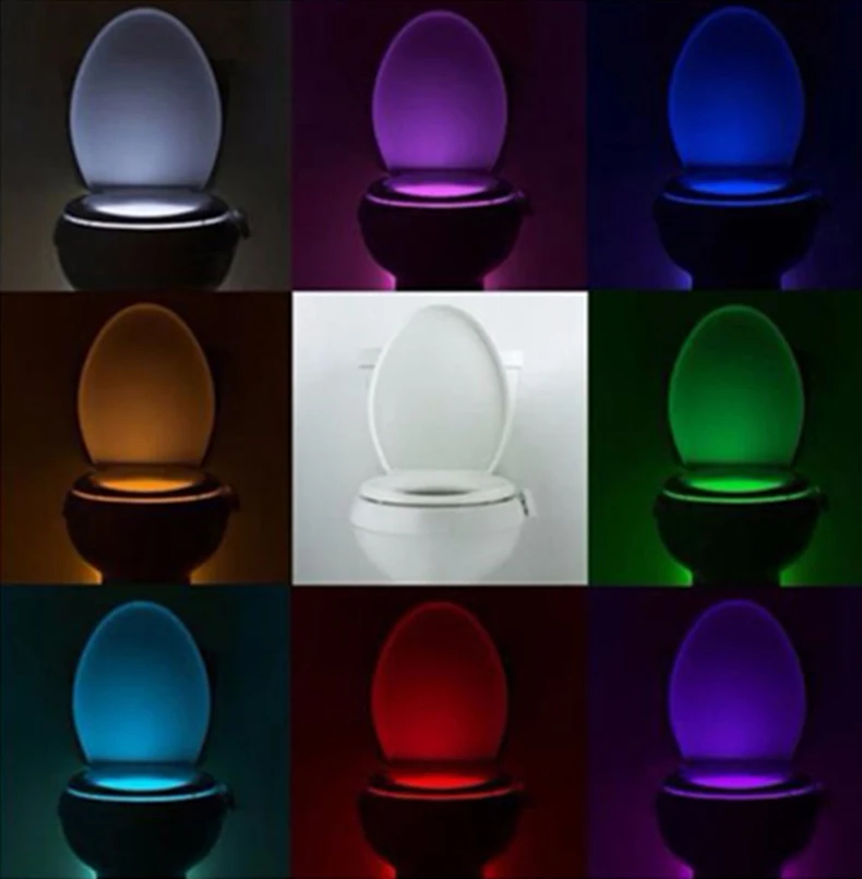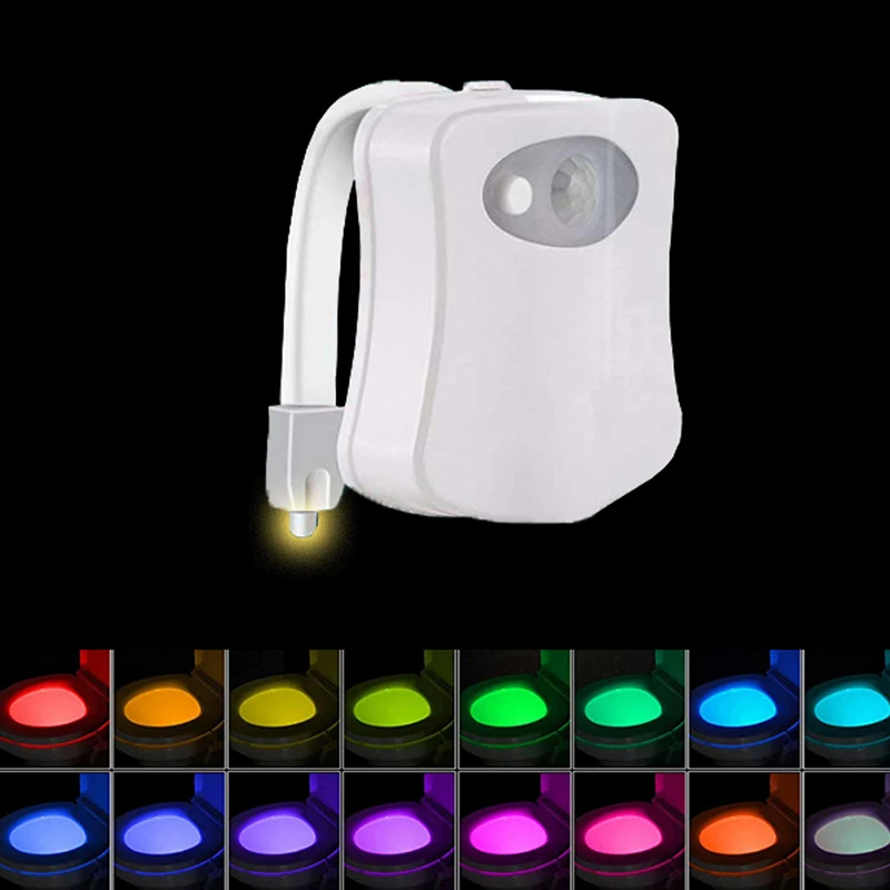 Автоматический цветной светодиодный светильник с датчиком движения для туалета, ночник с датчиком движения, водонепроницаемый задний фонарь для ванной комнаты, светильник для туалета с сухим аккумулятором