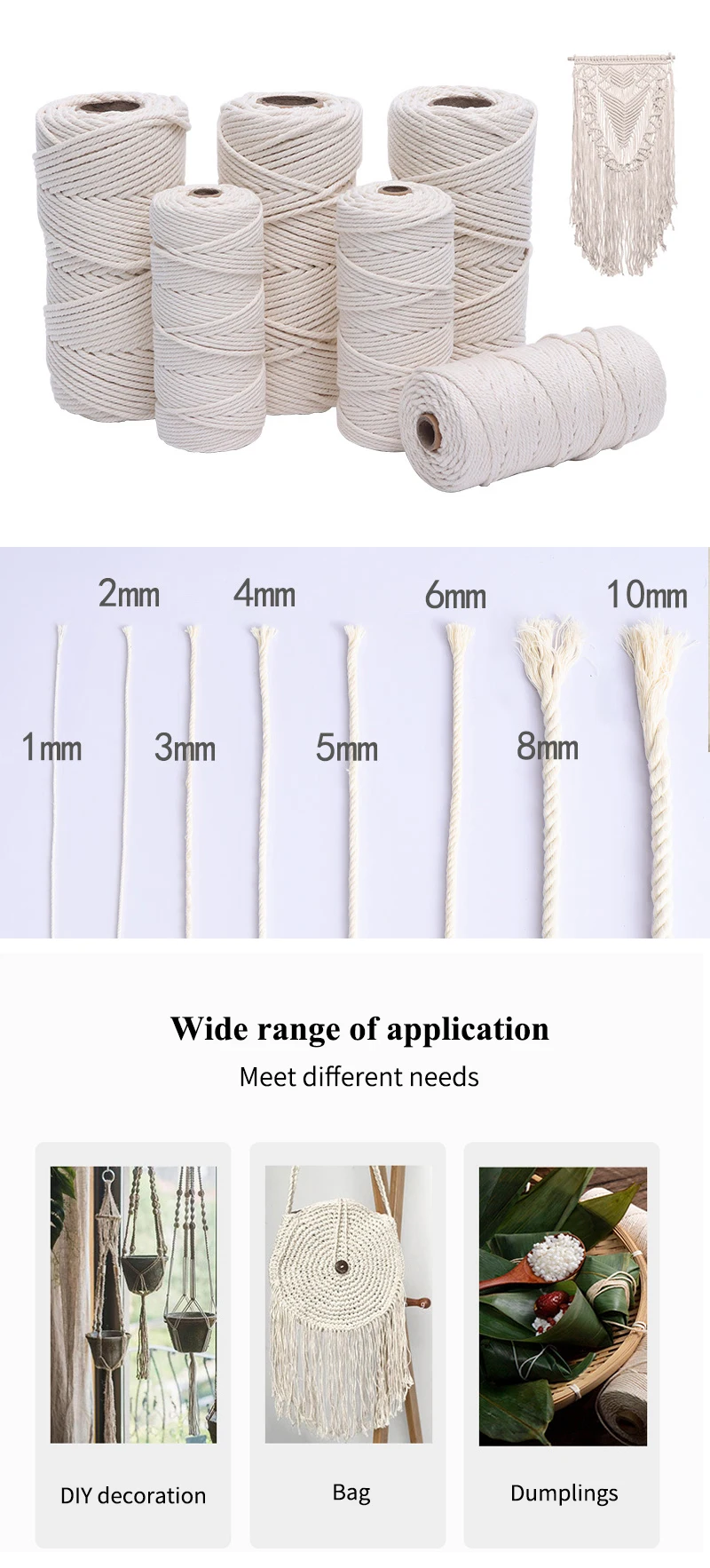 Хлопковый Шнур для макраме, веревка из натурального хлопка, 3 акции, витой хлопковый шнур сделай сам, настенные подвесные вешалки для растений, шнур для рукоделия и вязания