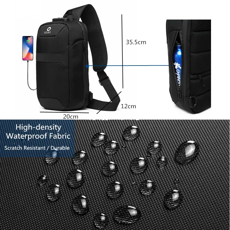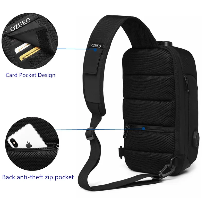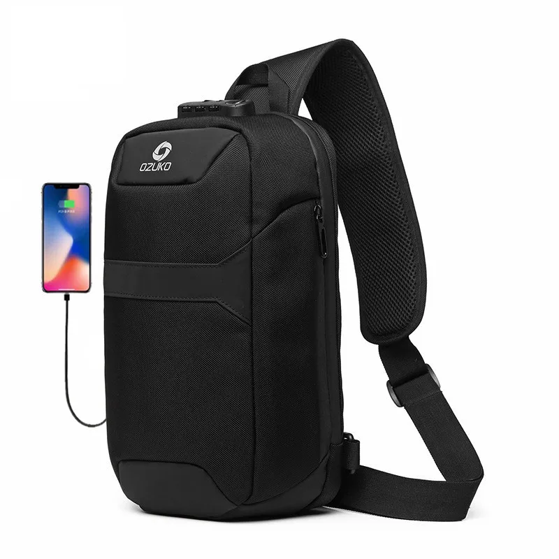 Нагрудная сумка OZUKO мужская с защитой от кражи, водонепроницаемый мессенджер на ремне с USB-зарядкой, сумочка-слинг для коротких поездок