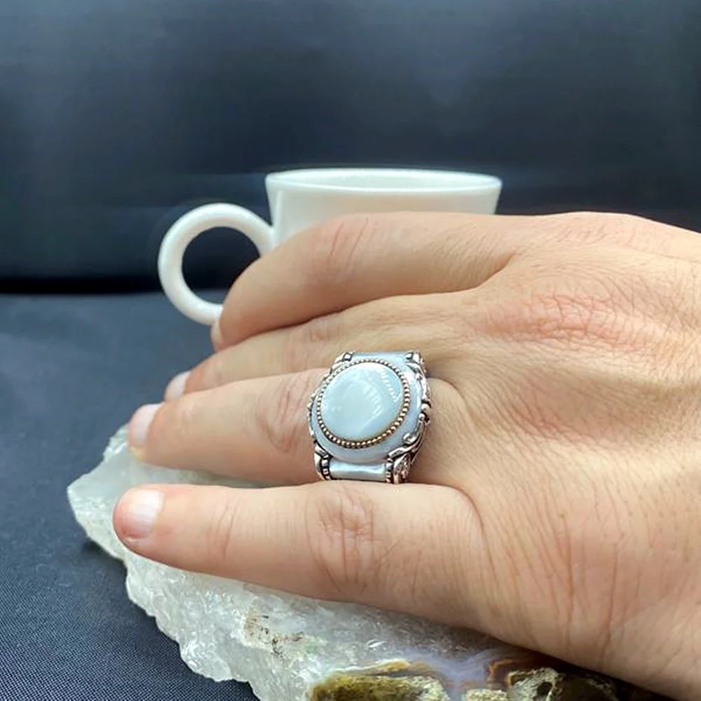Кольцо мужское из серебра 925 пробы, ручной работы, с турецким агатом
