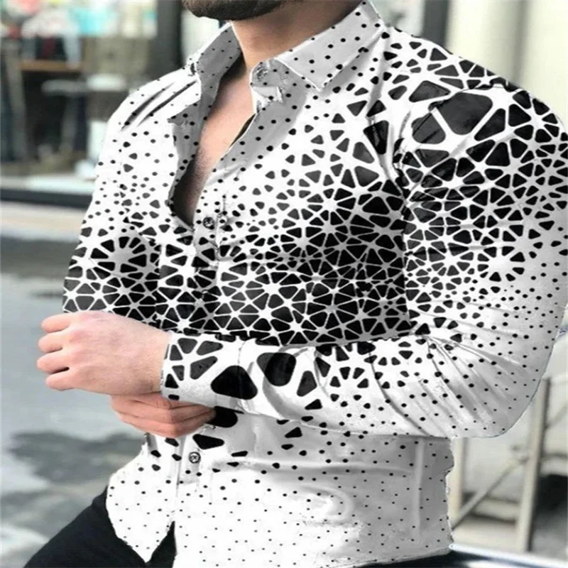 Рубашка мужская с геометрическим принтом, модная повседневная с отл...
