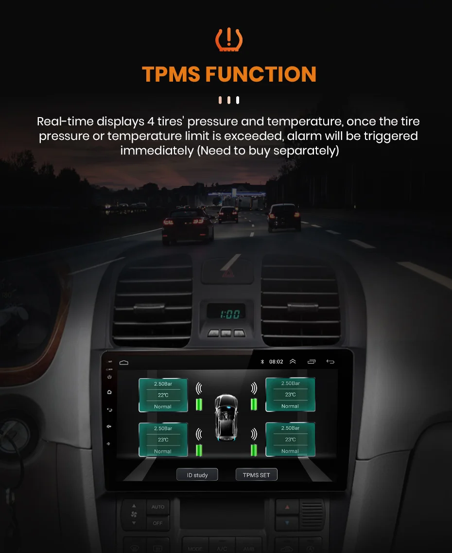 Отображает 4 давления и температуры в режиме реального времени. Как только давление или температура в шинах будут необычными, сразу же будет сигнал тревоги.