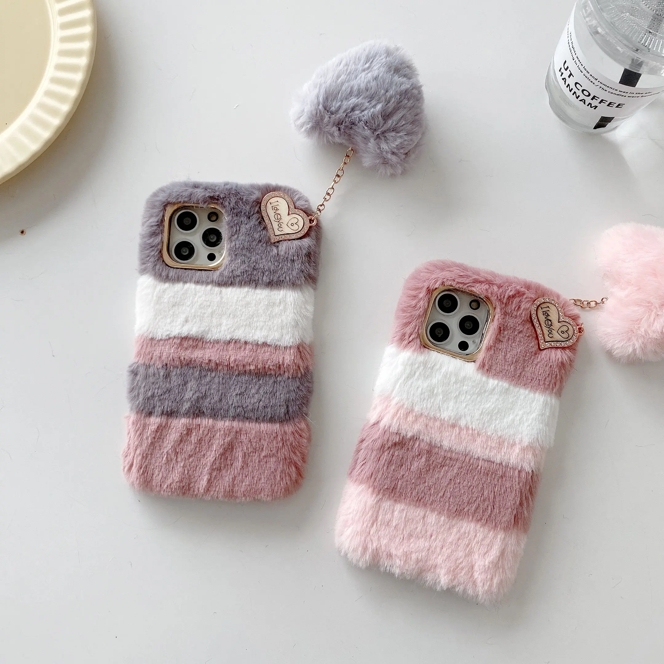 3D милый пушистый плюшевый мягкий меховой Радужный чехол для телефо...