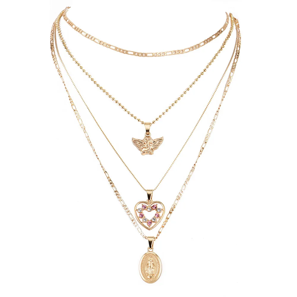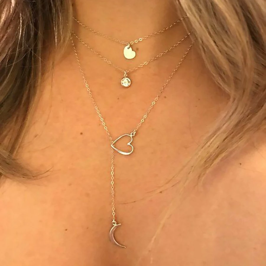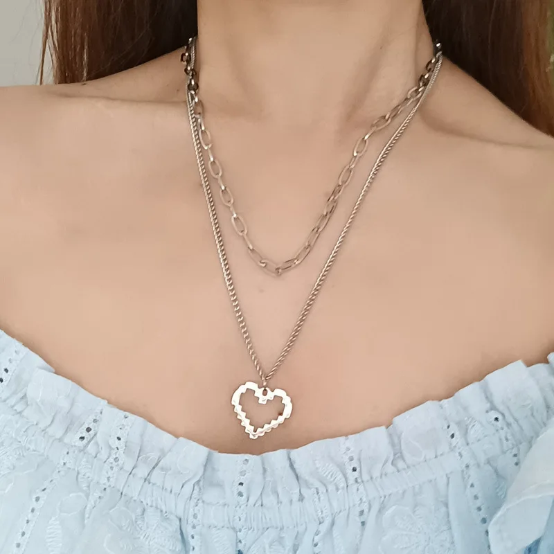 Цепочка многослойная женская, модное Ювелирное Украшение в стиле хип-хоп, цепь на свитер, кулон в виде сердца, длинное ожерелье