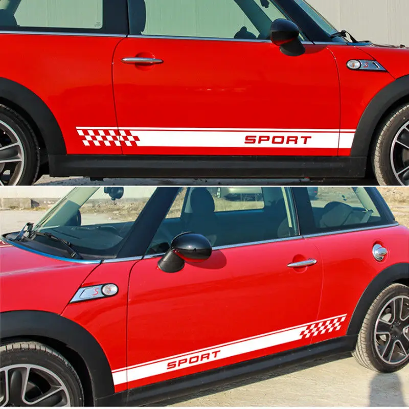 Новые автомобильные наклейки на талию, юбку для двери, боковая проверка, стип, автомобильные наклейки, отделка для Mini Cooper S JCW R53 R55 R56 R60 F55 F56 F60