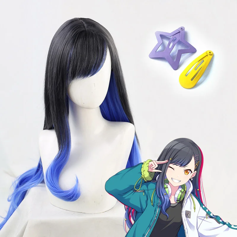 Цветной сценический парик Shiraishi An Project Sekai для косплея, термостойкий синтетический головной убор с кудрявыми волосами черного и синего цвета