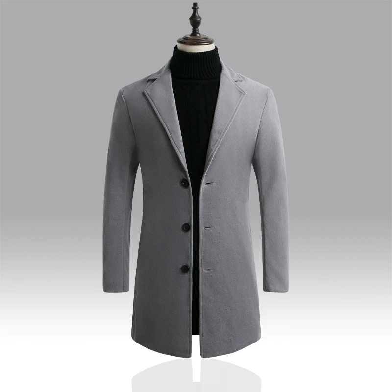 Осенне-зимнее мужское шерстяное пальто, длинное зимнее мужское шерс...