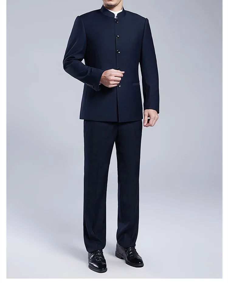 Мужской костюм из двух предметов с воротником-стойкой в китайском стилемужской однотонный Блейзер Чжун Шань, пиджак, брюки, 2 шт.