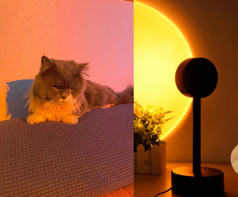 Проекционная лампа с радужным закатом, sunset lamp, ночник, светильник с USB для дома, фоновое цветная, украшение для стен,
