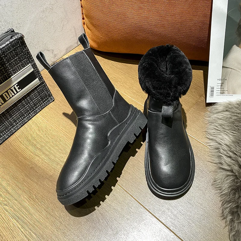 Fujinженские зимние ботинки из микрофибры; Водонепроницаемые слипоны на платформе; Нескользящие женские ботильоны; Модные меховые ботинки; Зимняя обувь