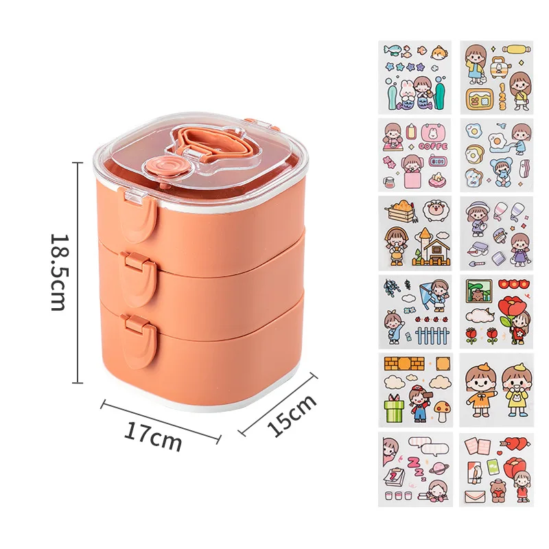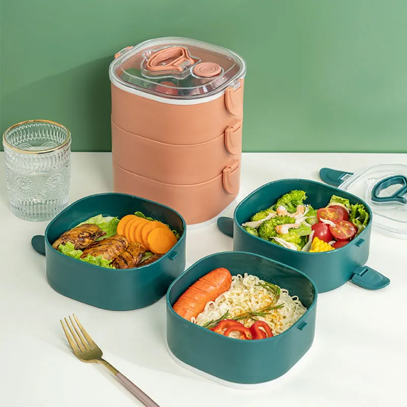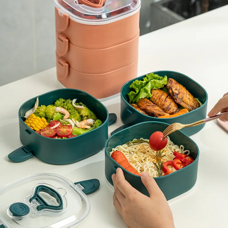 Ланч-бокс для микроволновой печи, портативный трехслойный пищевой контейнер, Ланч-бокс для здорового обеда, Ланч-бокс с столовыми приборами для детей, для школы
