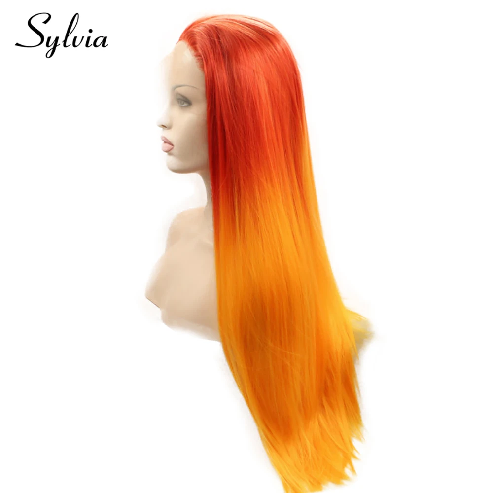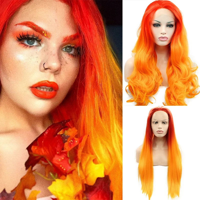 Парик для косплея HD прозрачный с фронтальной сеткой, кудрявые цветные искусственные волосы с волнистым телом апельсинового имбиря, красные прямые с эффектом омбре, синтетические волосы
