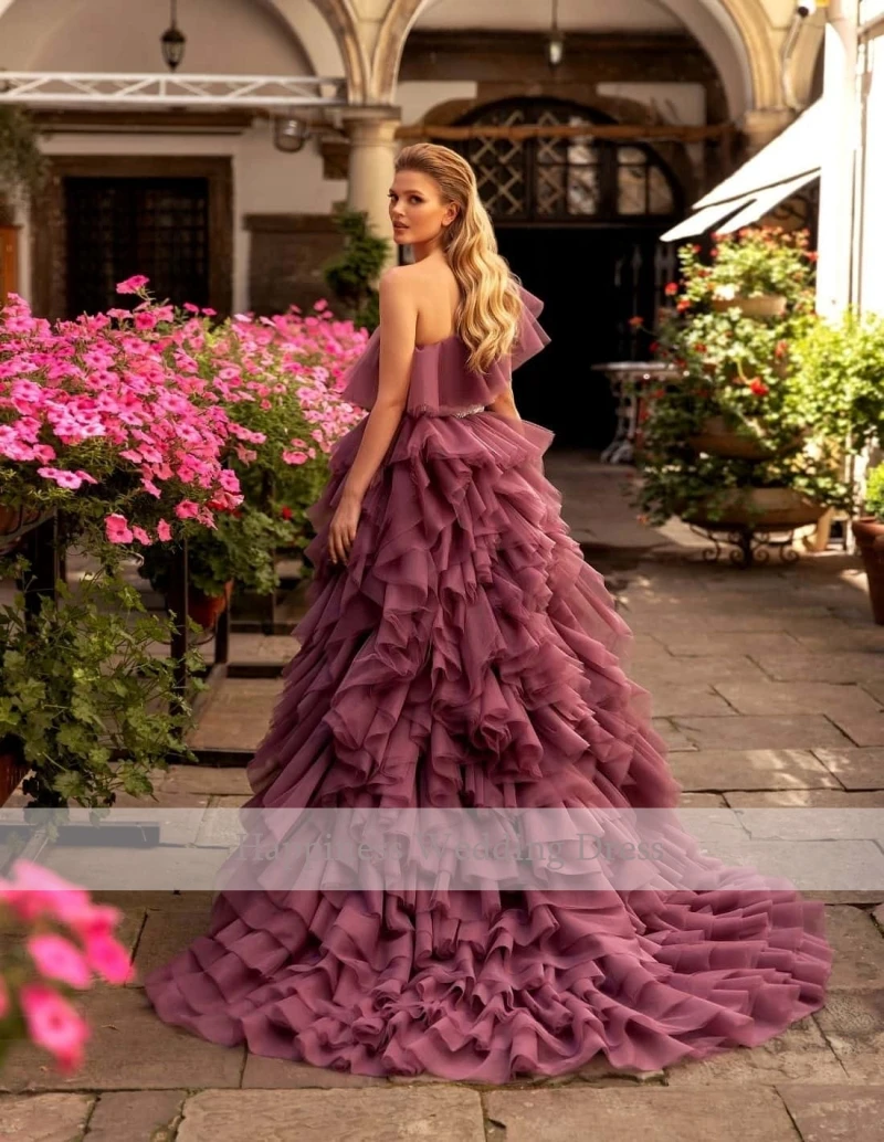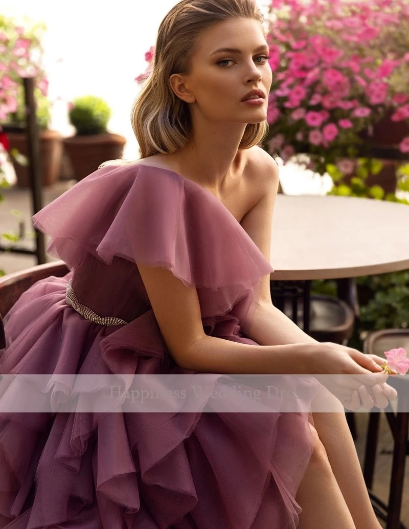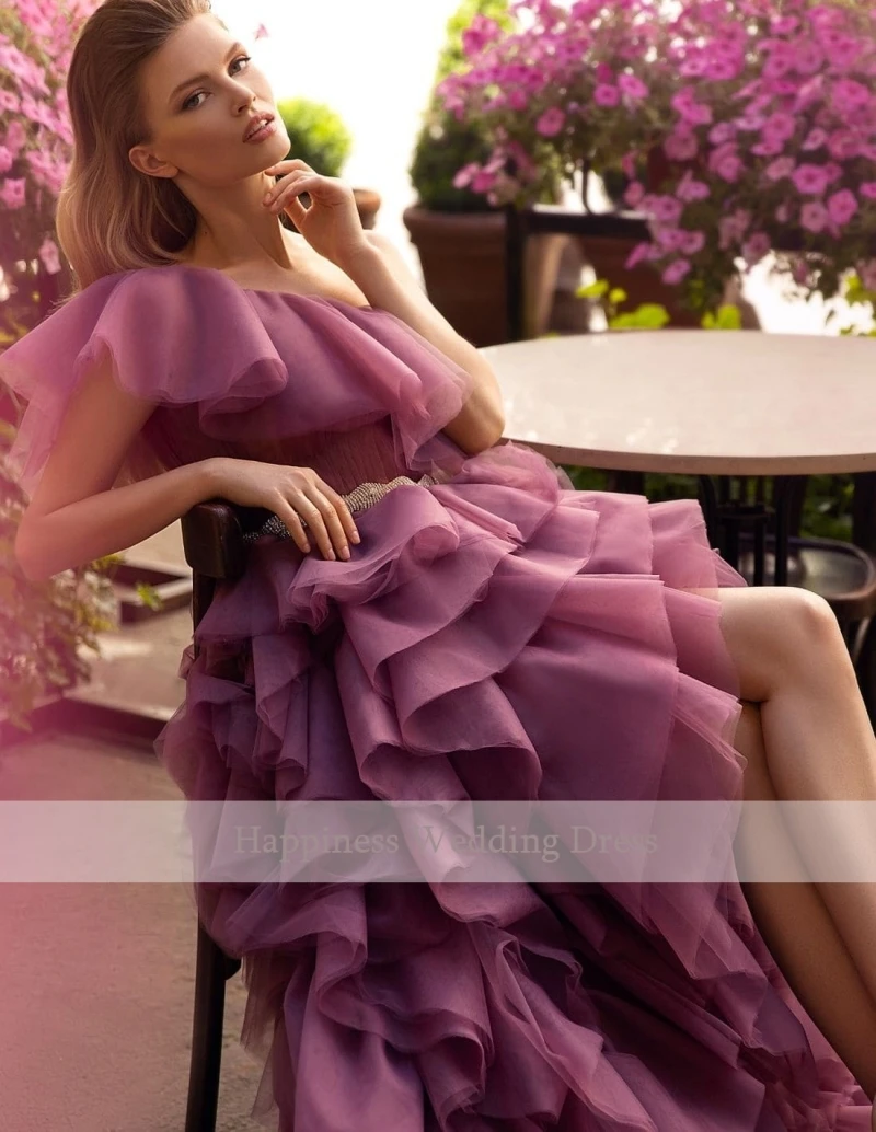 Специальное дизайнерское Многоярусное платье на одно плечо для выпускного вечера фиолетового цвета короткое спереди длинное сзади платье для свадьбы вечернее платье
