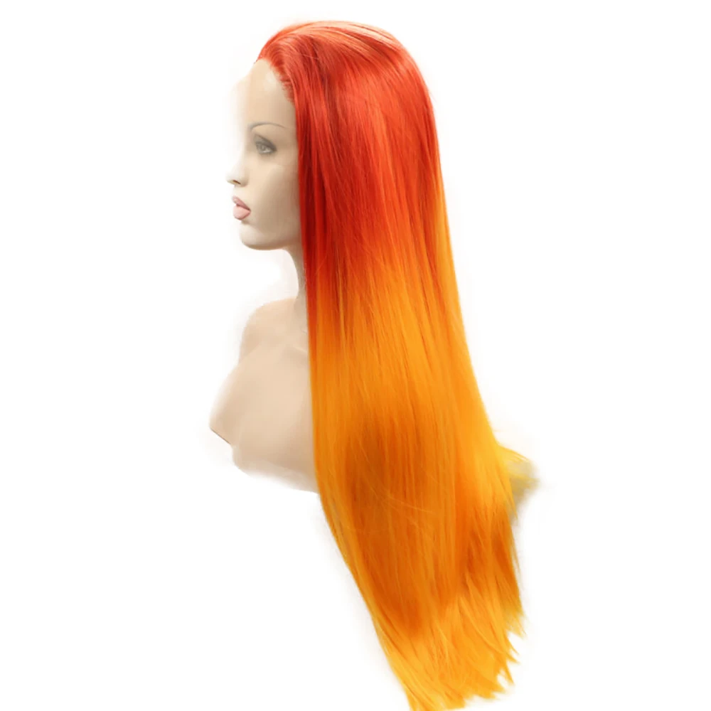 Оранжевый имбирь HD прозрачный волнистый кружевной фронтальный парик красный прямой Омбре кудрявые красочные передние парики косплей синтетические волосы