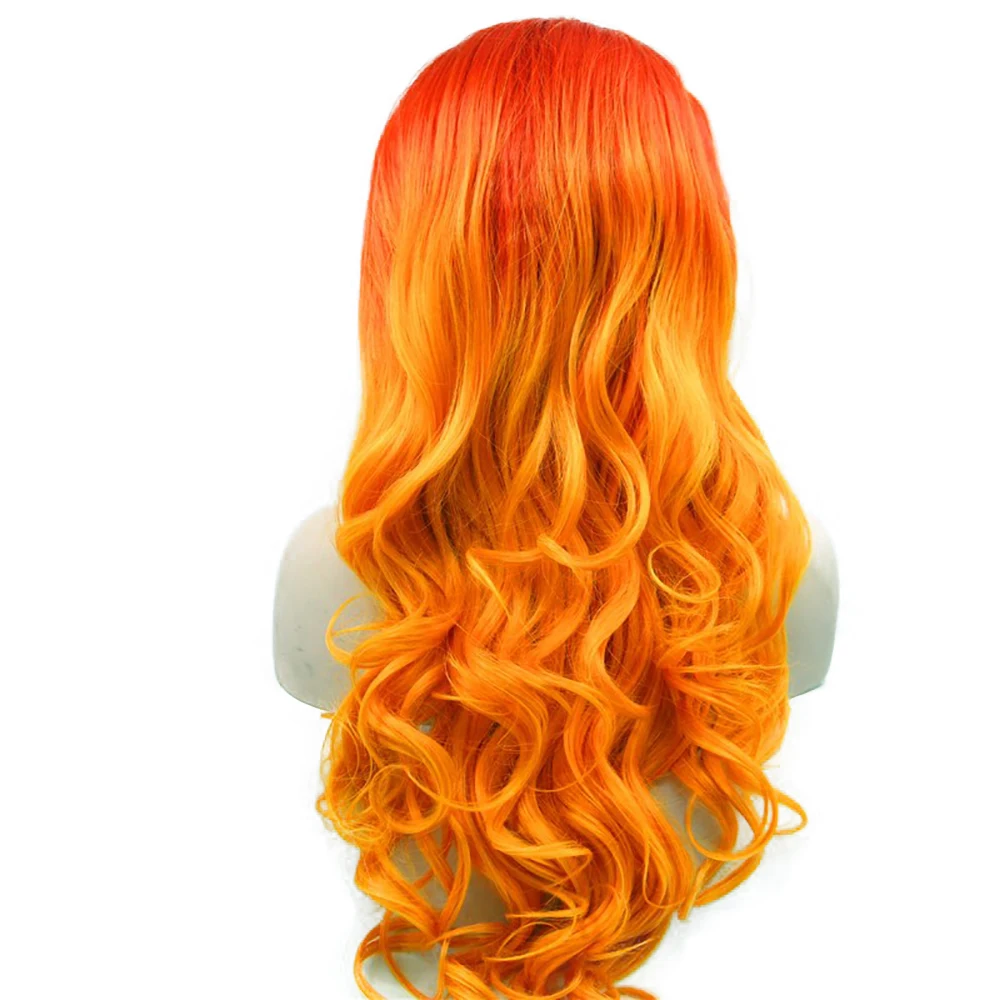 Парик для косплея синтетический оранжевый имбирь HD, прозрачный, с перехлёстом, с кудрявыми цветными передними волосами, с эффектом омбре