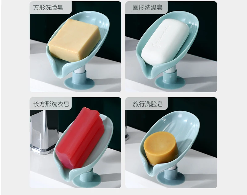 Ящик для мыла в форме листа, без перфорации, на присоске, сливная п...