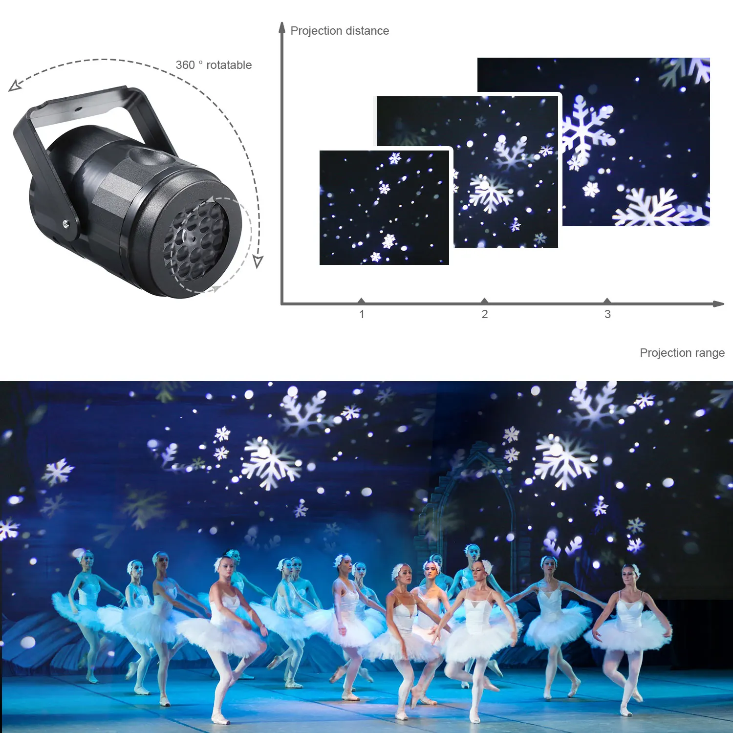 Светодиодный сцсветильник свет s, движущисветильник Снежинка, белый проектор снежинки, Рождественское украшение для дома, атмосфера, праздничные лампы