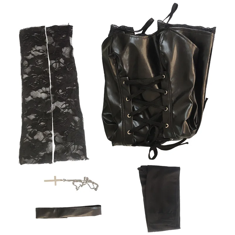 Костюм для косплея из искусственной кожи, перчатки, чулки и ожерелье