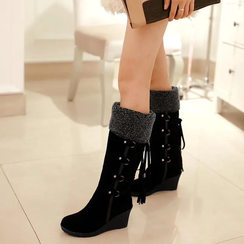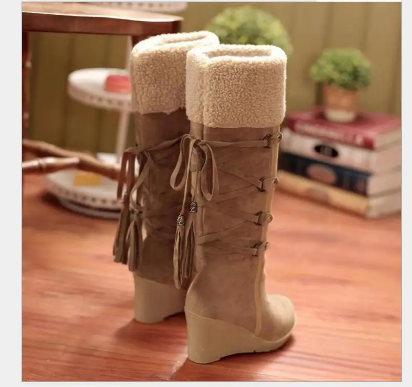 Женские теплые зимние ботинки на платформе, высокие ботинки с бахромой для снега, водонепроницаемые Ботильоны на каблуке, женская обувь, большая