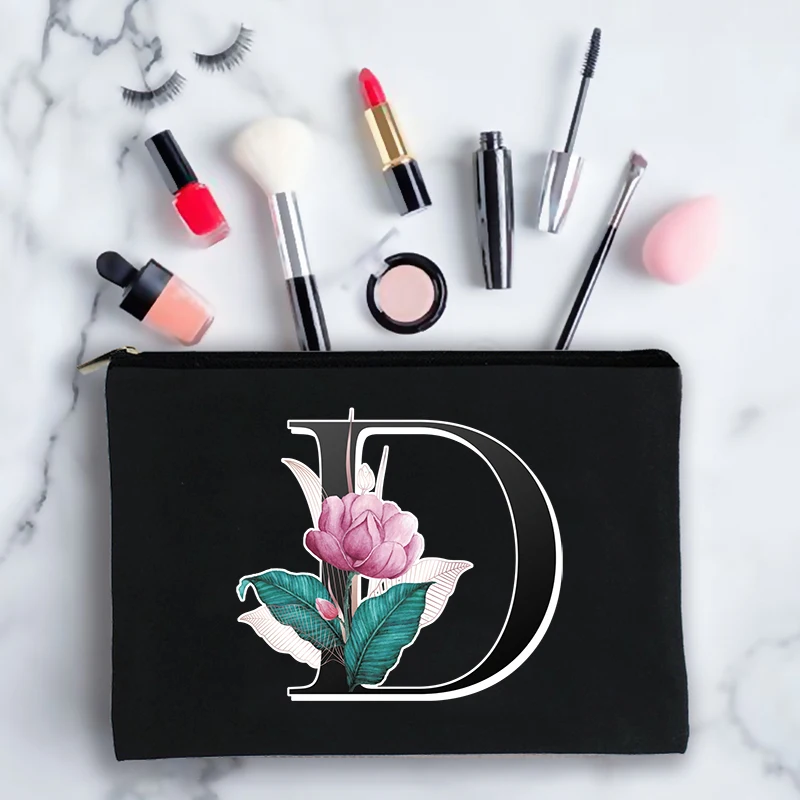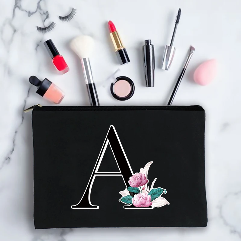 Косметички с цветочным принтом и алфавитом, модные холщовые черные ...