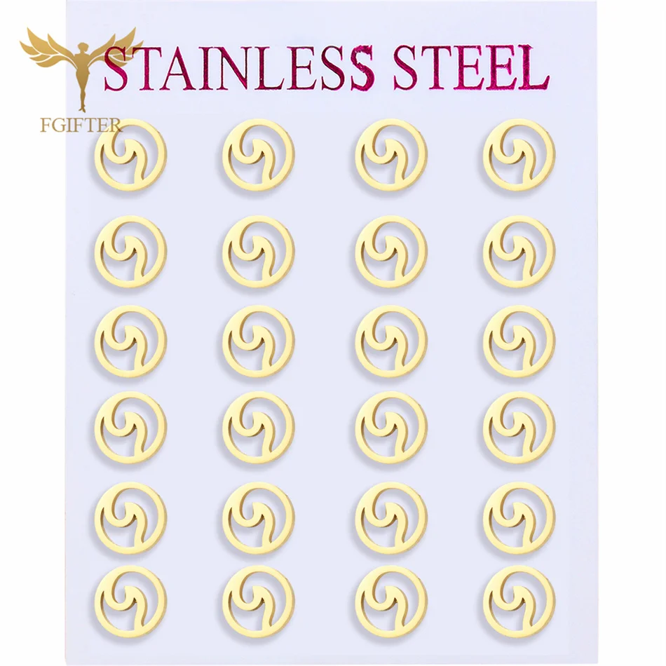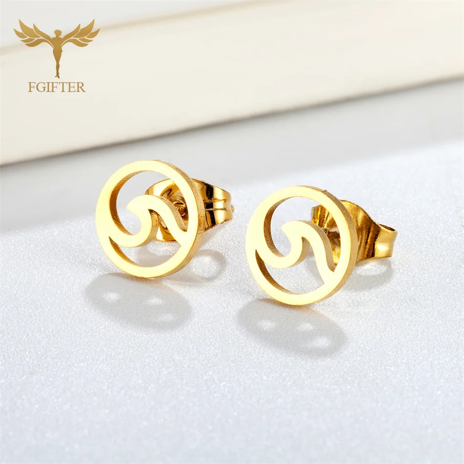 Круглые серьги-гвоздики в форме волны, позолоченные фитинги из нержавеющей стали, серьги-гвоздики в стиле хип-хоп для мужчин и женщин, геометрические украшения