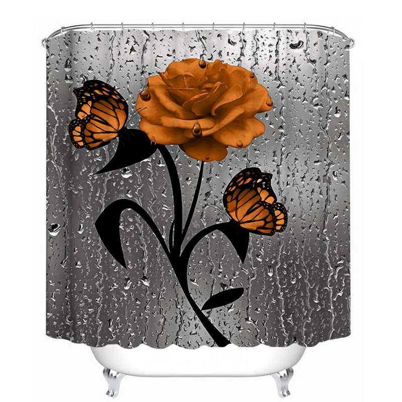 Занавески для ванной комнаты с рисунком оранжевых роз, противоскользящие шторы для ванной комнаты, набор штор для душа, коврики, коврики, украшение для дома