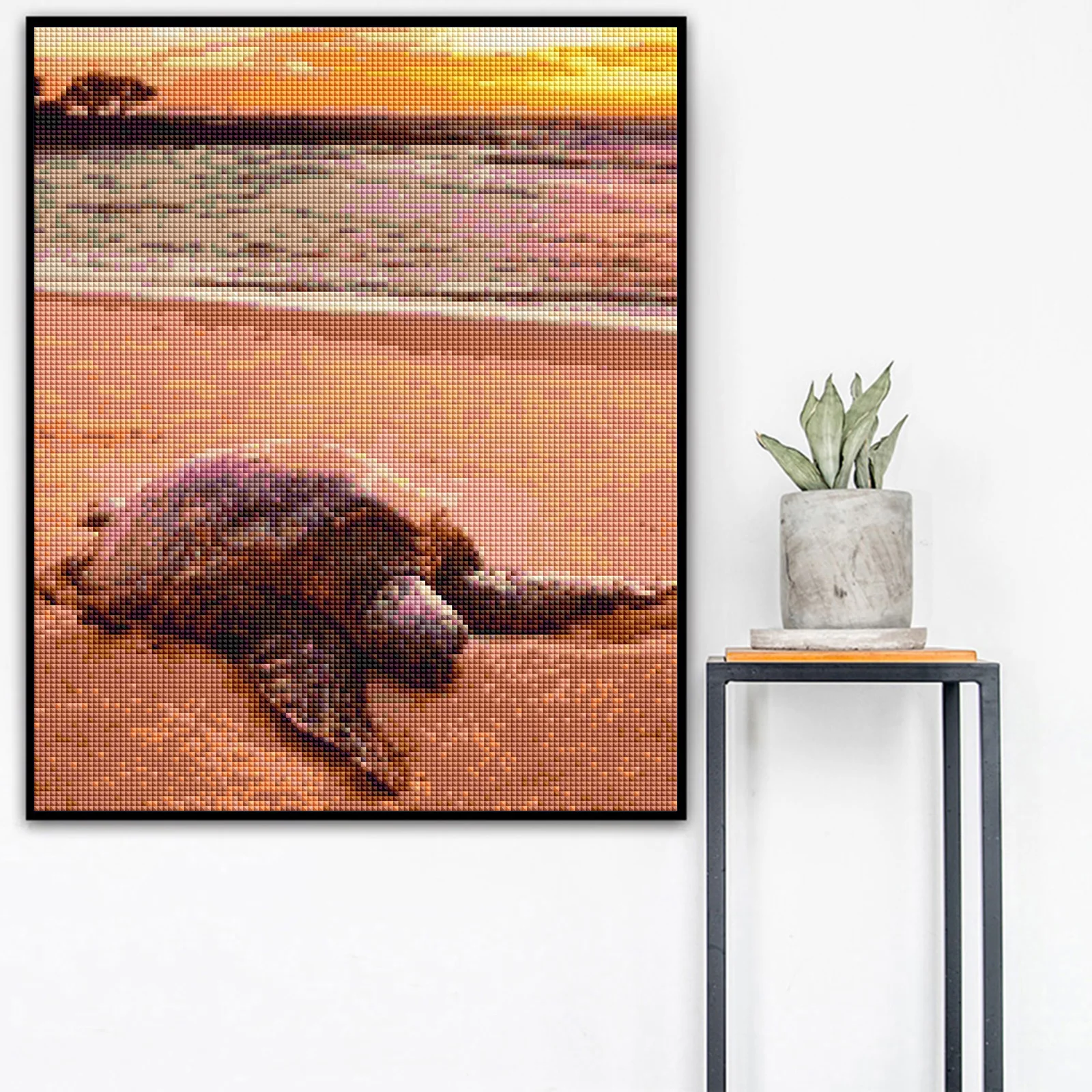 Холст Размер алмазная живопись черепаха полный квадратный Круглый DIY мозаика Стразы Вышивка крестом закат Алмазная вышивка побережье Декор