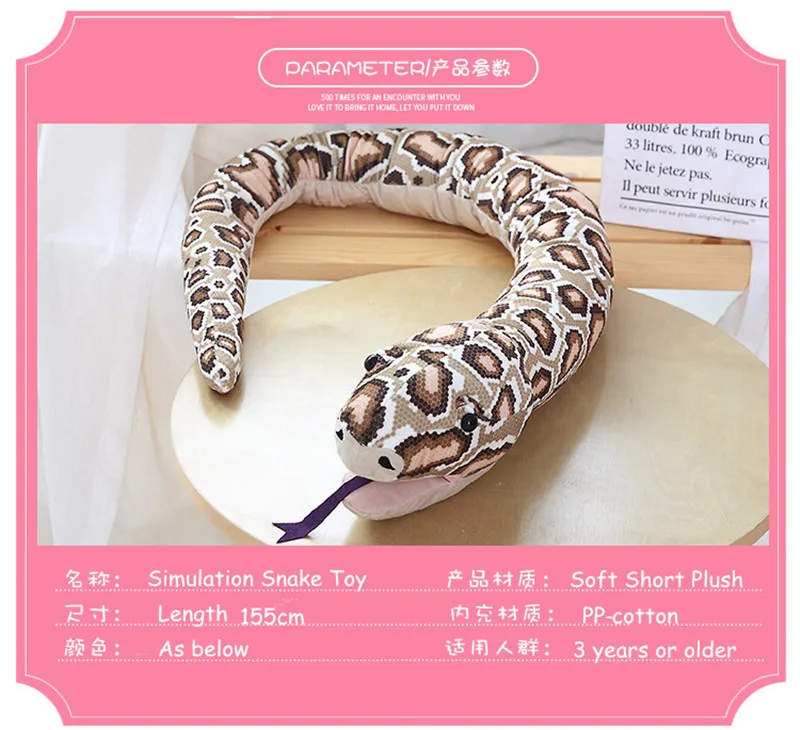 1pc 155cm Simulation Plush Toys Stuffed Giant Snake Animal Toy Soft...