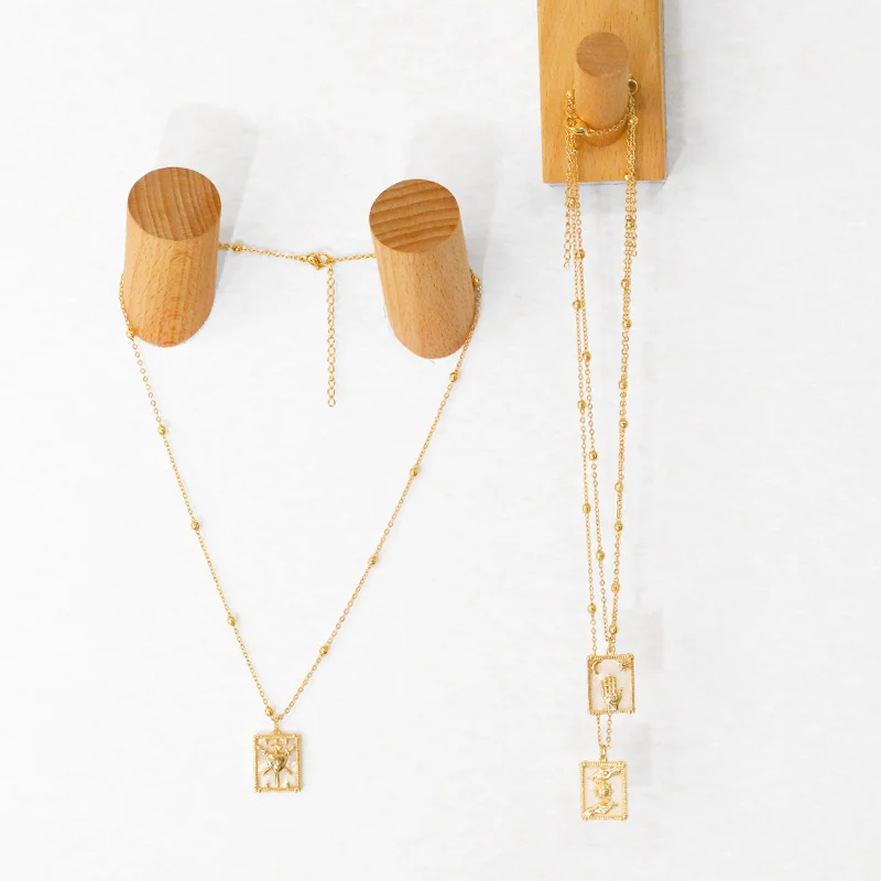 FLOLA цепочка с золотой бусиной сглаза ожерелье медная раковина прямоугольная подвеска Фатима ручное ожерелье Позолоченные ювелирные изделия nkey40