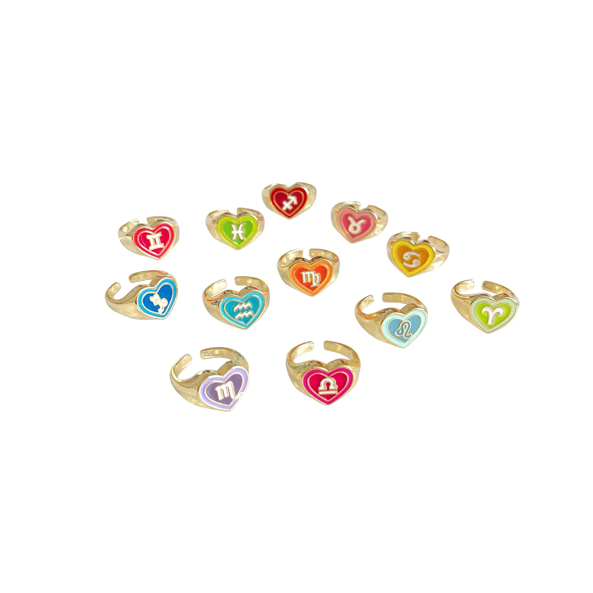 Женские кольца с 12 созвездиями THJ, винтажные медные кольца с радужным сердцем в стиле Харадзюку, эстетические подарки 90-х