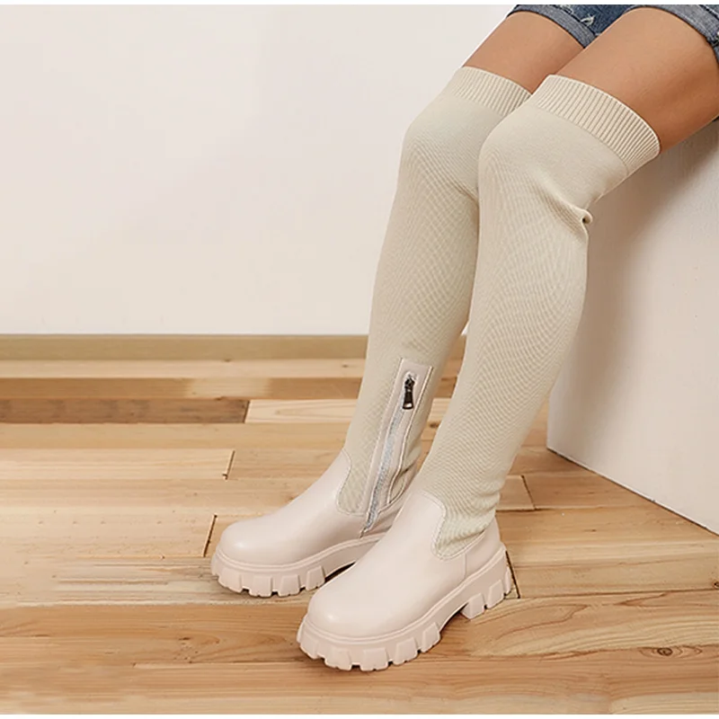 Женские ботфорты MCCKLE, сезон осень 2021, вязаные модные женские сапоги на платформе, сращивающиеся женские сапоги-носки, женские длинные сапоги
