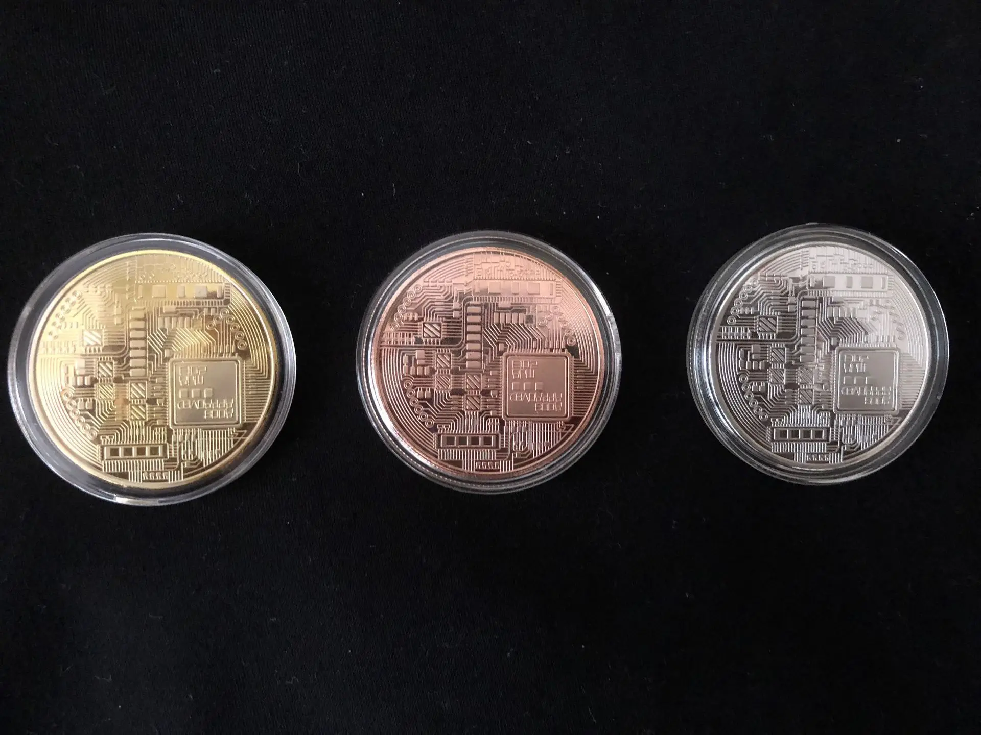 Биткоин арт коллекция Позолоченные физические биткоины Биткоин BTC чехол Подарок физический Металл антикварная имитация серебряные монеты