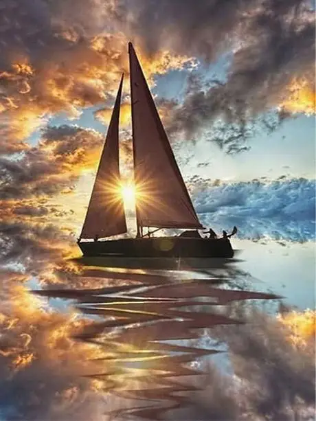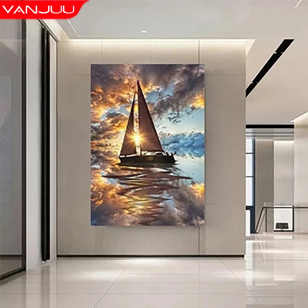 HUACAN Алмазная картина парусник Ландшафтная мозаика с бриллиантами...