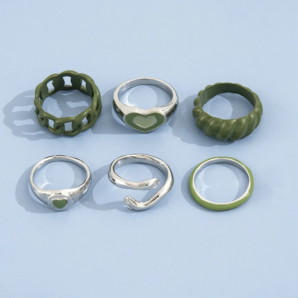 Набор Колец Y2K в Корейском стиле с зеленым покрытием из смолы для ...