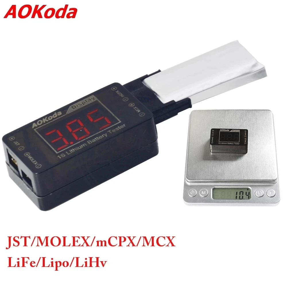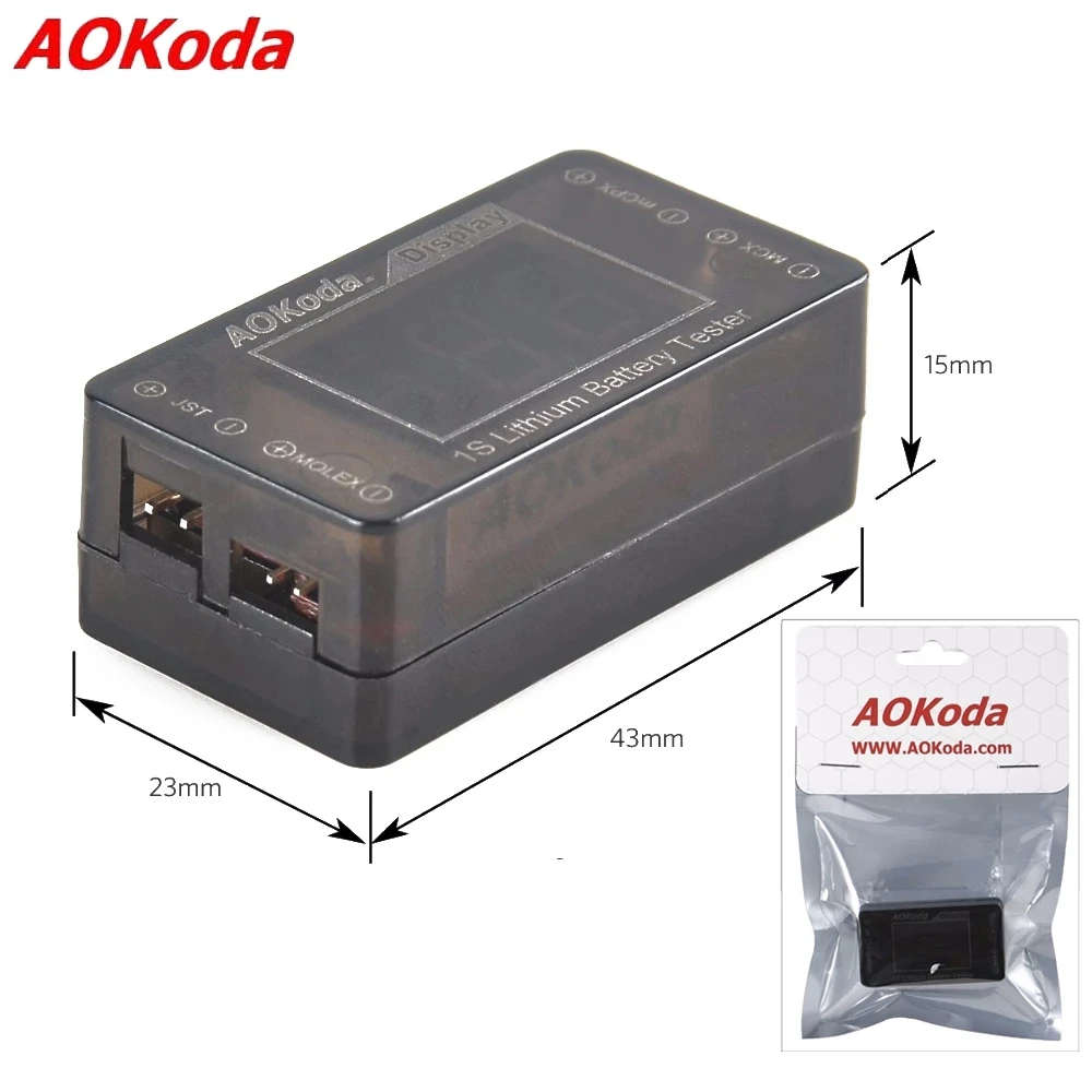 AOKoda AOK-041 1S индикатор тестирования литий-полимерныхживыхлитий-ионных аккумуляторов для проверки напряжения аккумулятора для разъема JST MOLEX mCPX MCX
