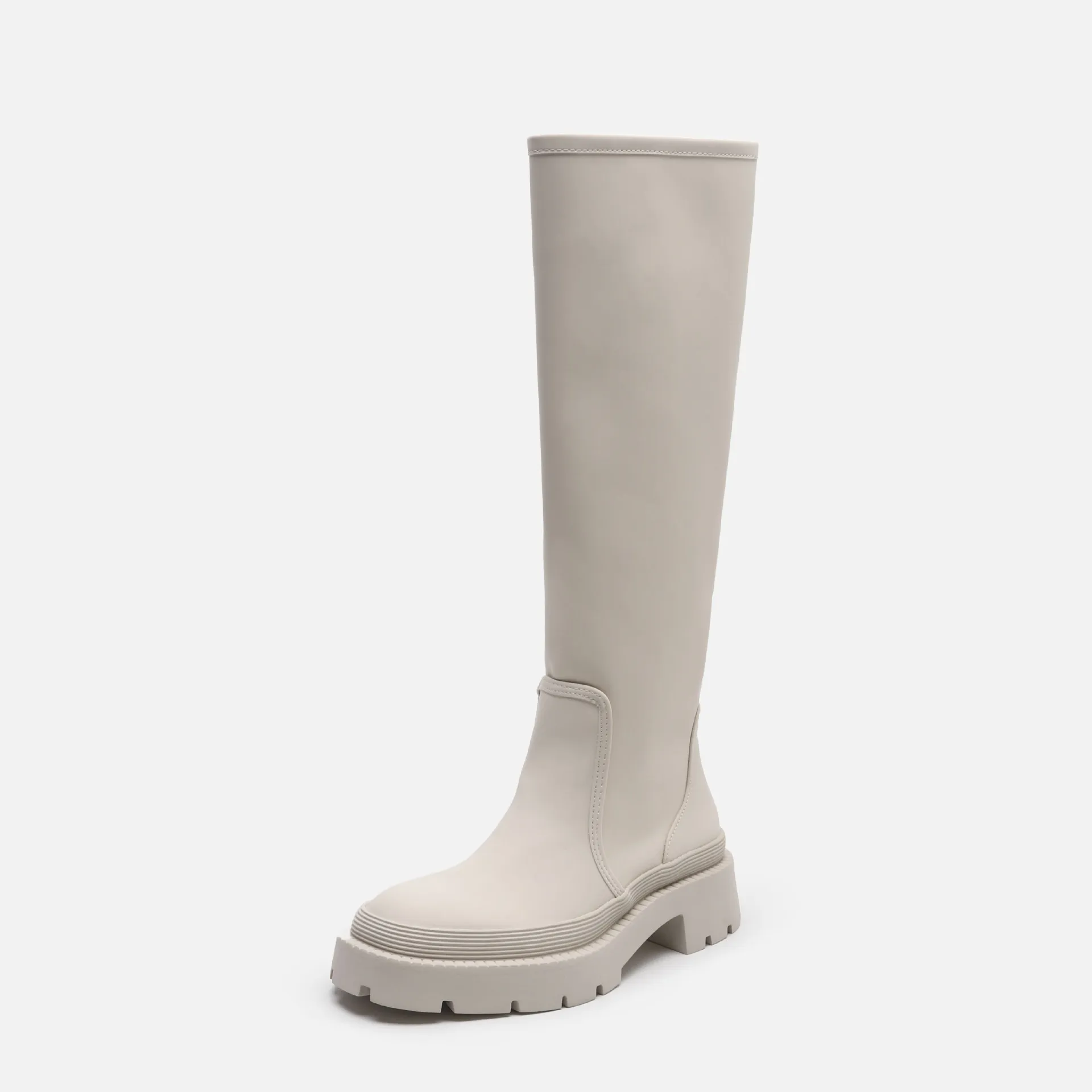 Женские сапоги на плоской подошве, теплые кожаные сапоги до колена,...