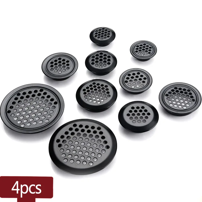 4 шт. черный шкаф сетка отверстие вентиляционное отверстие воздуховод гриль жалюзи сетка отверстие Нержавеющая сталь плоская поверхность 30 мм-65 мм выпуклая поверхность